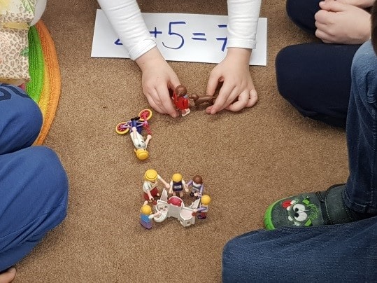 Dies ist keine einfache Aufgabe, dennoch erleichtert die Veranschaulichung durch die Playmobilmenschen die Aufgabe und macht die Rechnung, die sie ausrechnen müssen, verständlicher - auch fördert es die Motivation der Kinder. Anhand des taktilen Lernens können die Kinder Dinge besser abspeichern. Das Lernen kann im Kopf mit positiven Gefühlen (z.B. Freude) assoziiert werden und fördert dadurch automatisch das Lernen.